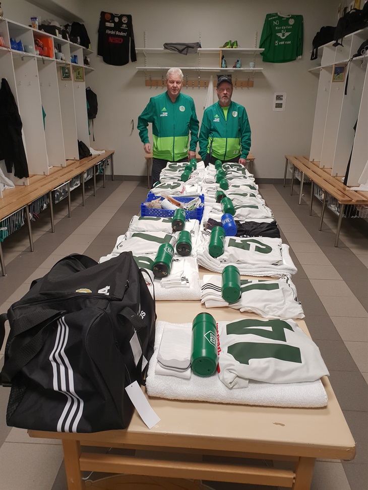 Björn och Stephen har iordningställt matchställen inför matchen mot Notviken IK