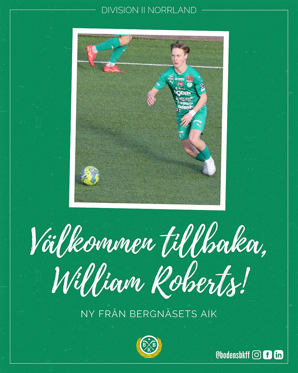 Förra säsongen spelade William Roberts med Bergnäsets AIK. Nu återvänder till BBK Fotboll.