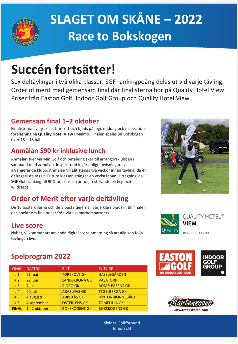 Här finner ni information angående individuella tävlingar som Skånes Golfförbund arrangerar. Vi kommer också att ha lag i de olika seriespelen för juniorer i Skåne.