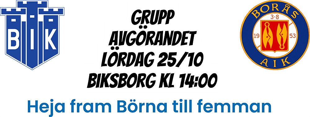 Kvalgruppens sista match avgör om det bli BIK eller Borås som vinner gruppen. Borås leder på bättre målskillnad. Ska det gå vägen så krävs det att vi vinner. Vi ska göra så gott vi kan. Hoppas vi ses på Biksborg på lördag.