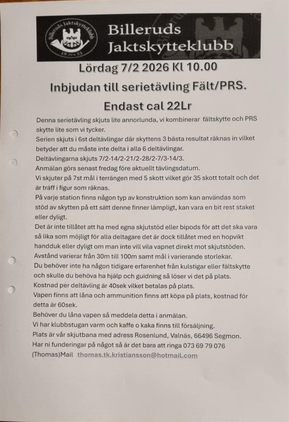 Inbjudan till en Fält/PRS Endast cal 22Lr
