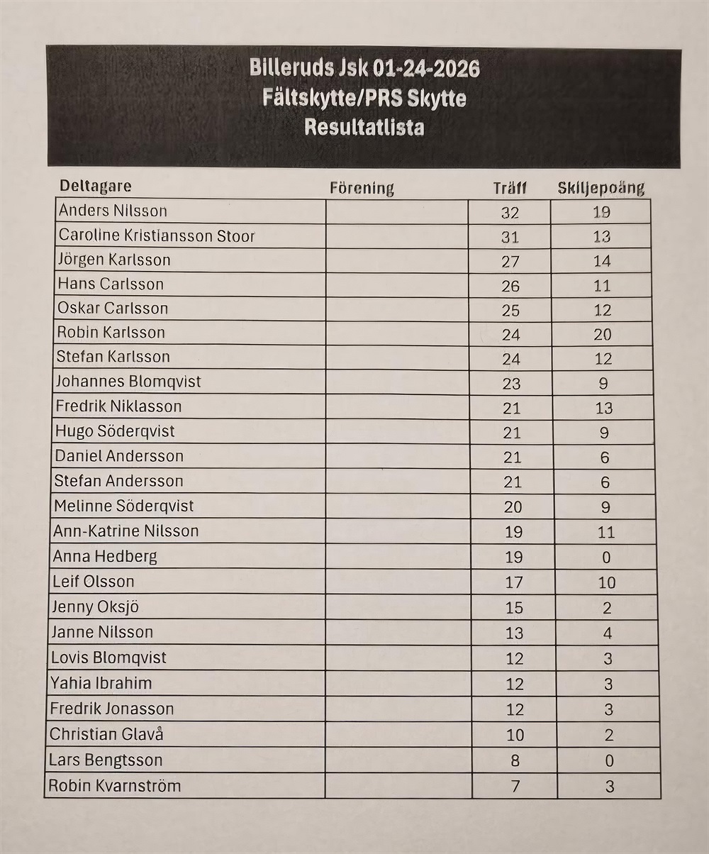 Sammanställning av dagens tävling som var en kombination av Fältskytte och PRS skytte.