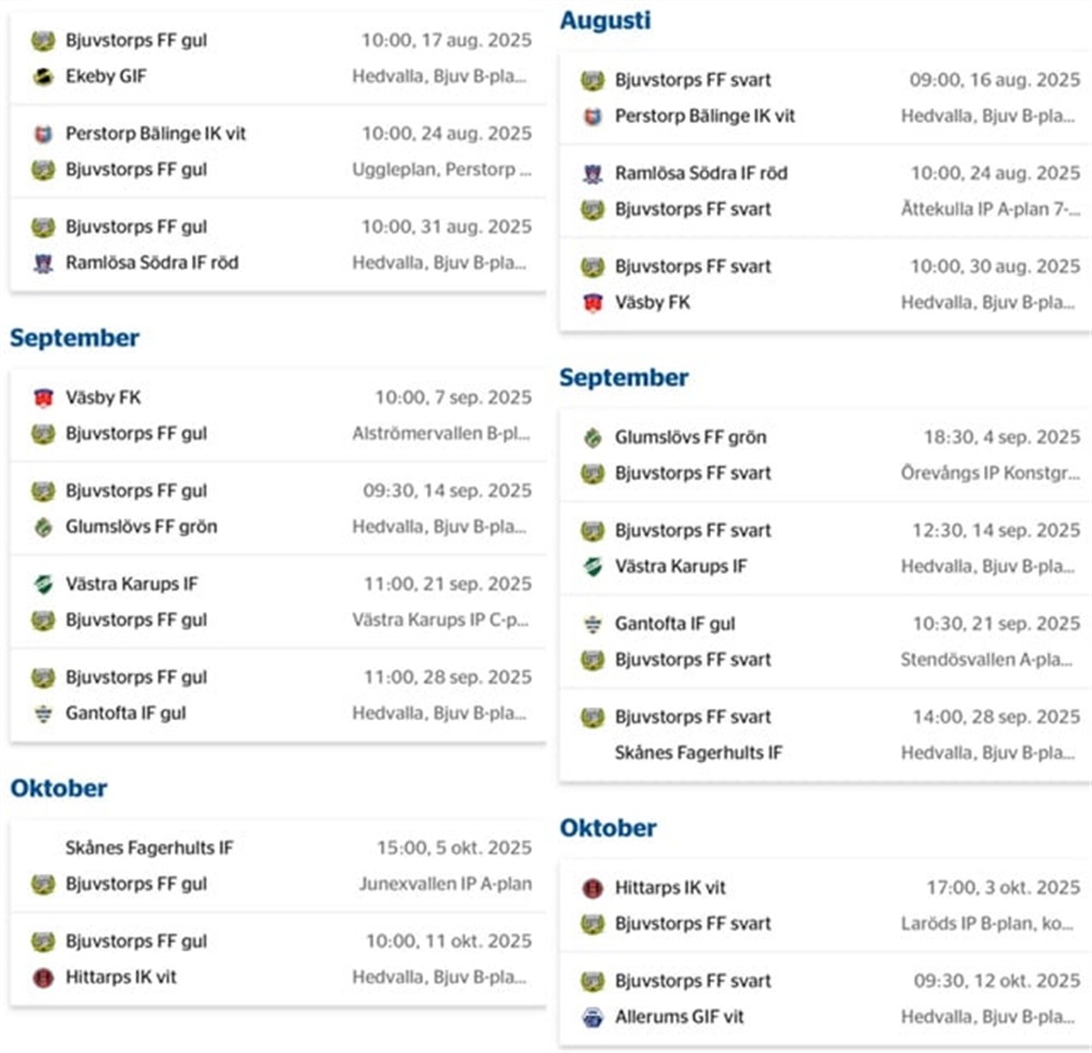 Vi har fått mycket frågor om att lägga ut schemat för hösten så det underlättar att planera helger osv.