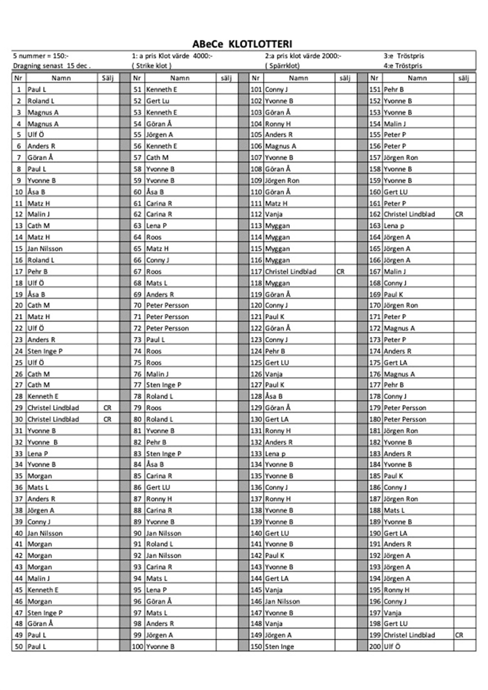 Klotlotteriet är nu slutsålt. Ett enormt intresse från våra egna medlemmar att införskaffa sig ett nytt spärrklot :-) ( Rätt tänkt )