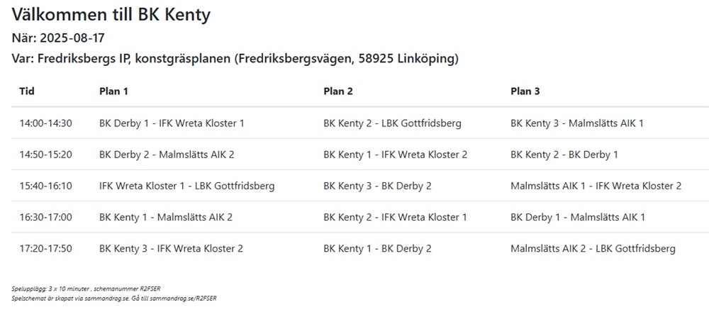 Här är info angående spelschema etc. Vi bestämmer lag på plats så vi möts omklädda och klara 13.30.