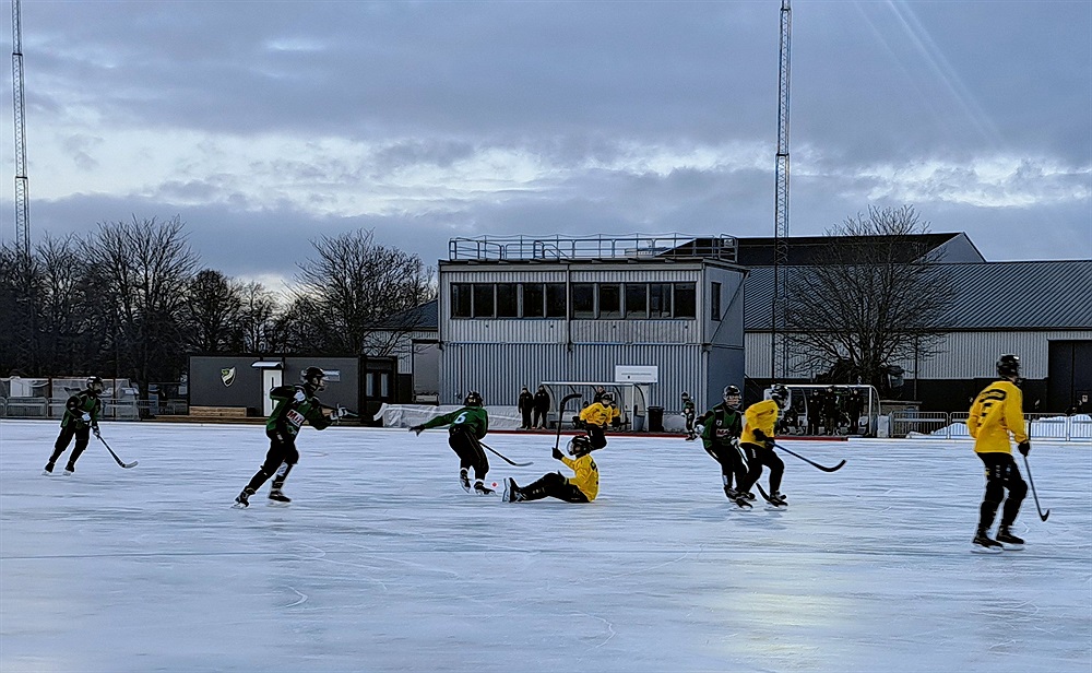 I helgen spelade vi hemma mot Gripen P19, en match där vi direkt kände att det var två jämna lag som drabbade samman. I första halvlek var isen både mjuk och frosttäckt vilket gjorde det svårt för både oss och motståndarna att driva bollen. Detta var nog en bidragande faktor till vårt havererade passningsspel. Många av våra anfall stannade upp när passningarna inte kom eller hade fel adress.