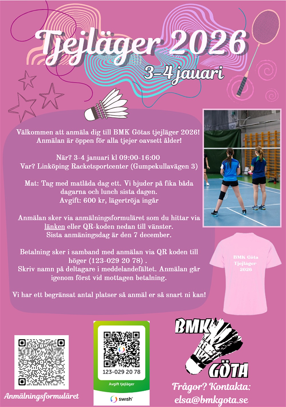 Mer information om träningen finns under flikarna börja spela badminton och träning.