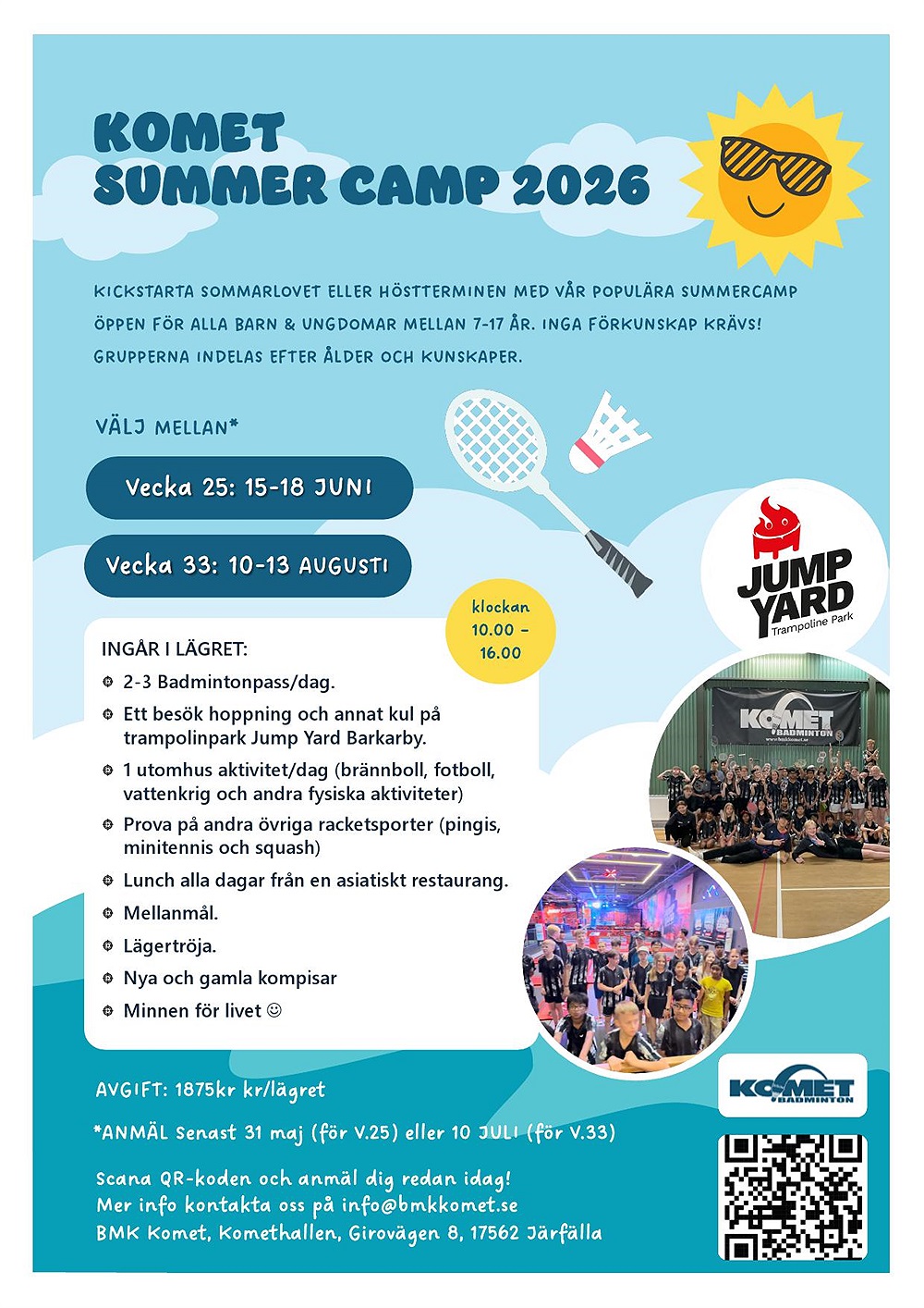 Anmälan via betal formulär nedan redan idag, dock allra senast 31 maj för deltagande vecka 25 och 15 juli för vecka 33.
