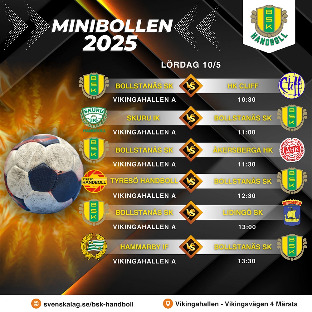 Idag Lördag den 10/5 så spelas Minibollen 2025 och självklart så kommer våra yngre spelare ifrån handbollsskolan att medverka. Kom förbi och stötta våra framtida stjärnor i Vikingahallen med start 10:30.