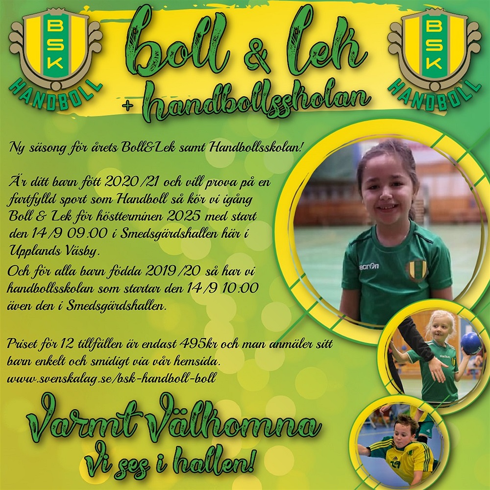 Nu är det äntligen dags igen för Boll & Lek samt Handbollsskolan att dra igång!! Vi startar höstsäsongen 2025 den 14/9 från 09:00 med boll & lek och 10:00 med handbollsskolan. För mer info och anmälan kan ni trycka på respektive länk som följer.