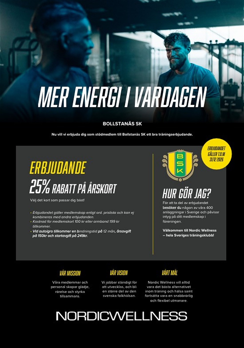 Nu kan alla i Bollstanäs SK köpa Nordic Wellness årskort med 25 % rabatt.
