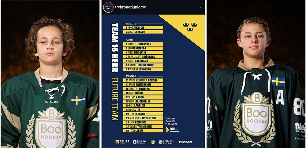 Boo HC vill rikta ett stort grattis till Alexander Myrentorp och Samuel Boumedienne för att blivit uttagna till Tre Kronor Future Team!