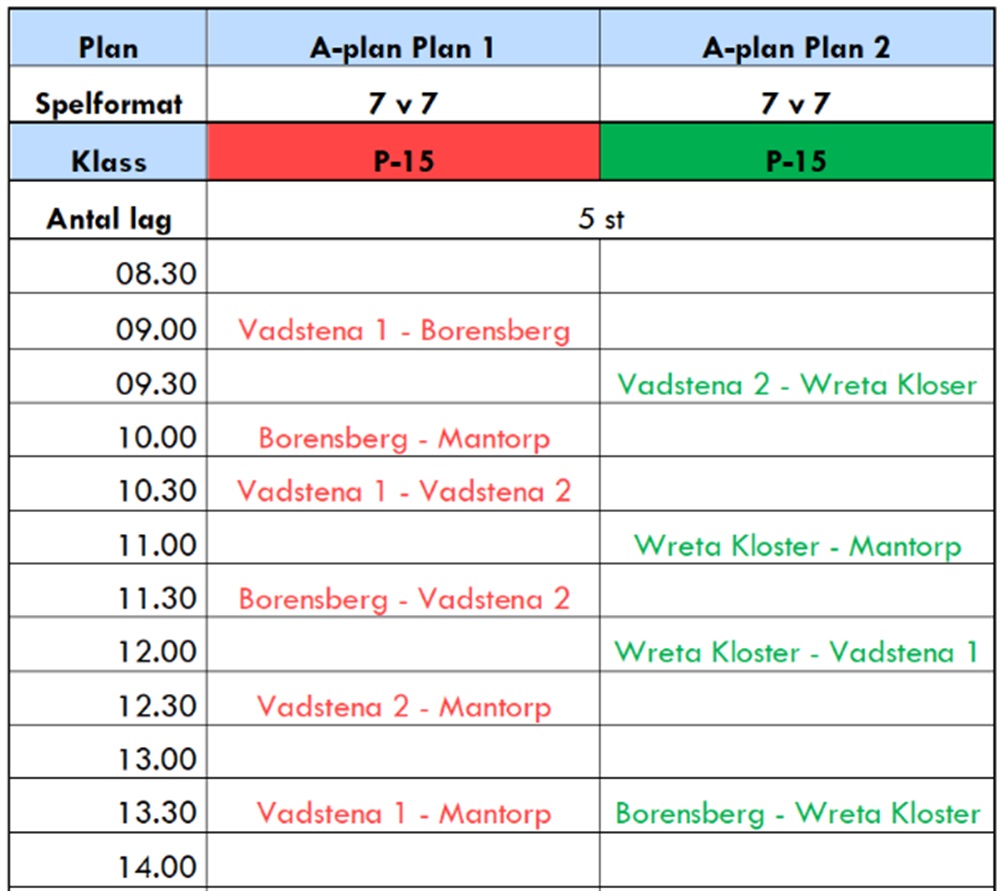 Lördagen den 5 juli är det dags för Slottscupen på Kungsvalla IP i Vadstena. Vi samlas ombytta i Vadstena kl.8.20. Första matchen spelas kl.9.00, se spelschema ovan.