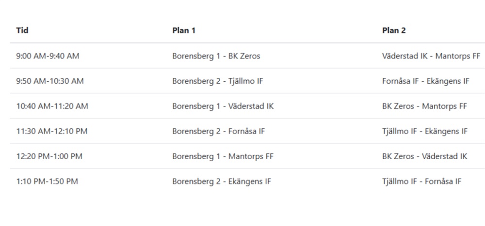 Här kommer matchprogrammet inför morgondagens sammandrag.