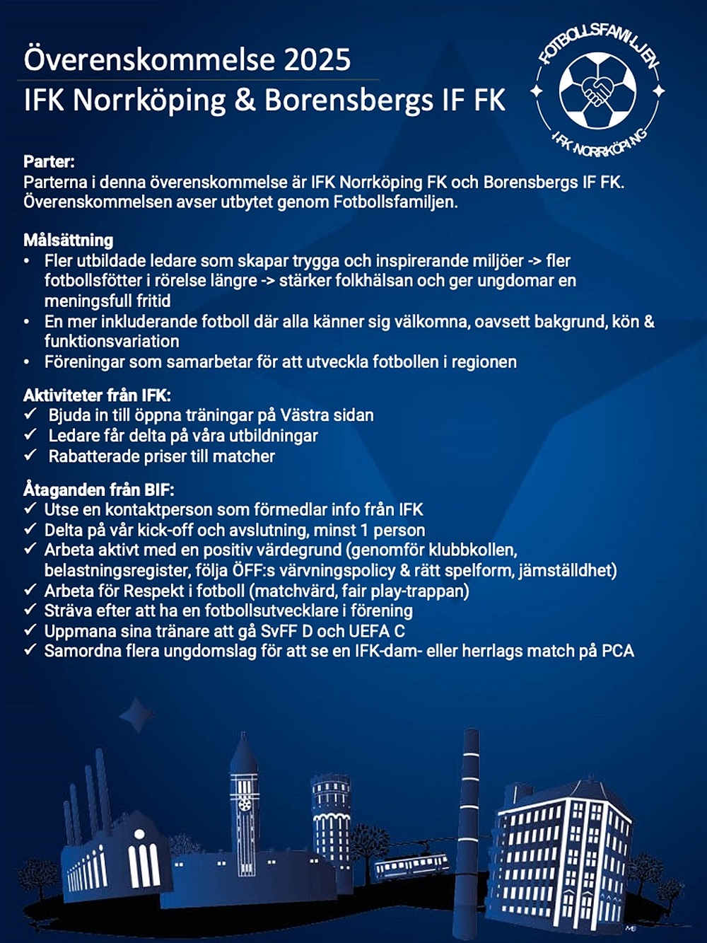 Vi har ingått samarbete med Fotbollsfamiljen IFK Norrköping.