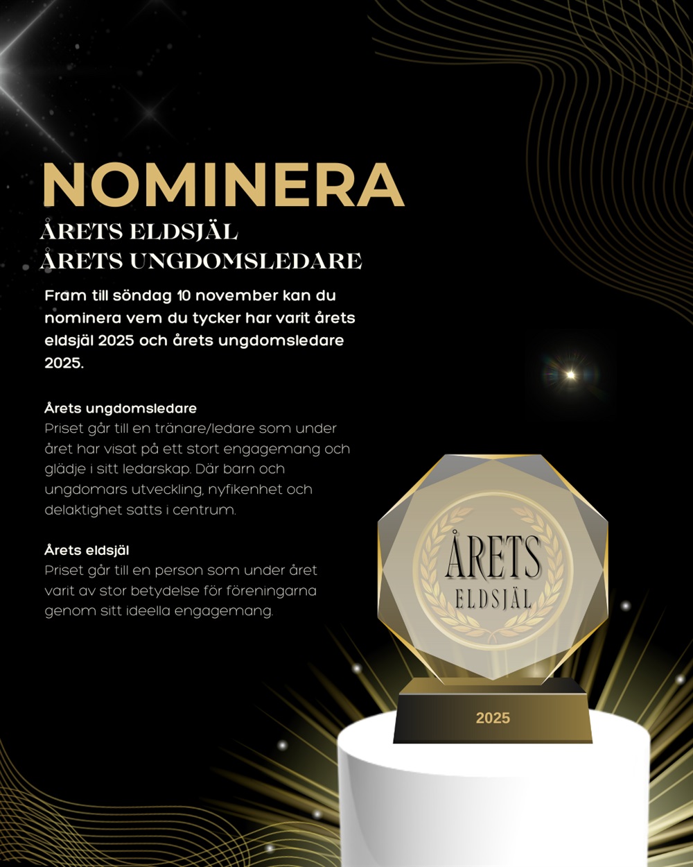 Fram till söndag 10 november kan du nominera vem du tycker har varit årets eldsjäl 2025 och årets ungdomsledare 2025.