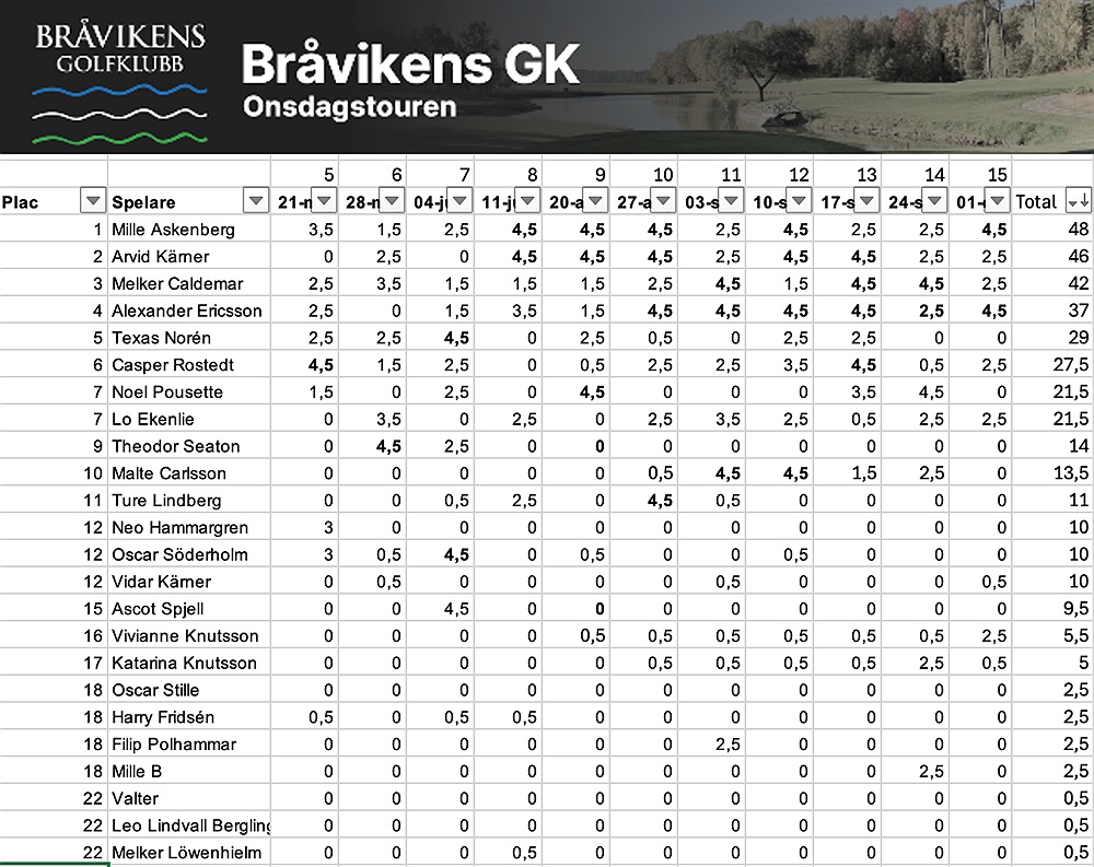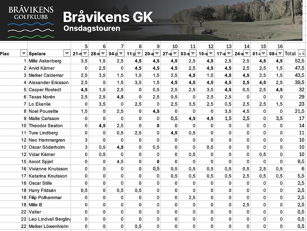 Onsdagstouren är en korthålstävling som pågår under säsongen för alla våra juniorer och ungdomar!