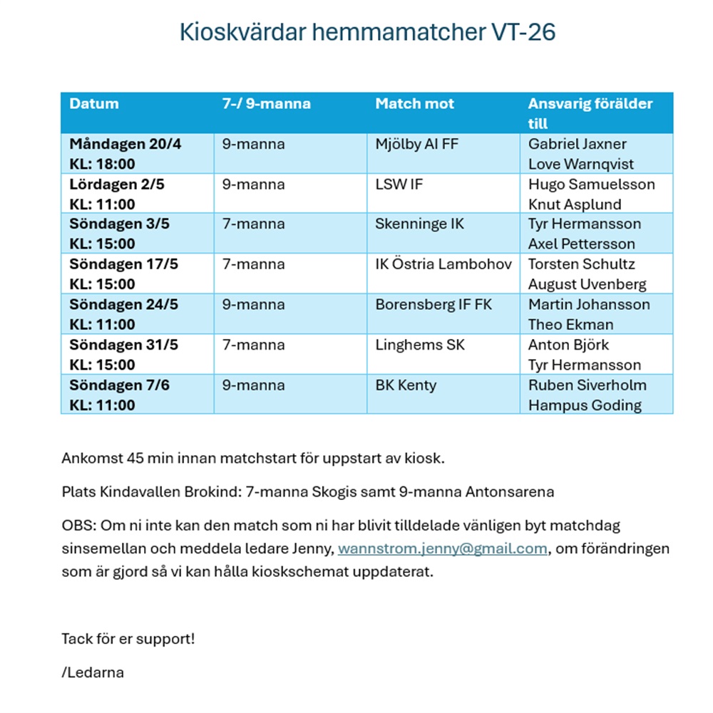Ok🙂 de som ställer till de med två kiosk just nu är att vi kör sammandrag för pojkar 17/18 ( både jag och albin är tränare där)dom infaller exempelvis samma dag den 31/5😅😅 men vi försöker byta den dagen.