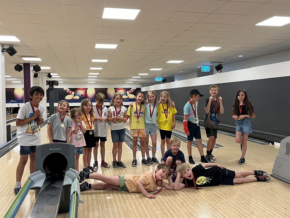 Ca 30 barn tränar hos oss varje vecka fördelat på 2 grupper. Målet är att genom glädje och skratt lösa svårigheten att få ner de 10 vita käglorna som står 60 fot (19,2 m) bort. Inga förkunskaper krävs och allt material finns att låna i bowlinghallen. Du är välkommen att i mån av plats droppa in på en träningen och prova på 2 tillfällen.