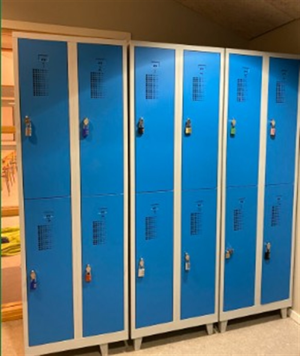I Klubbis finns fina omklädningsrum med dusch och toaletter. Där finns möjlighet för våra medlemmar att hyra skåp.