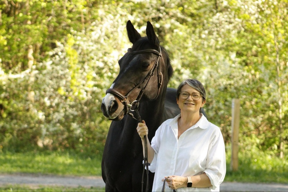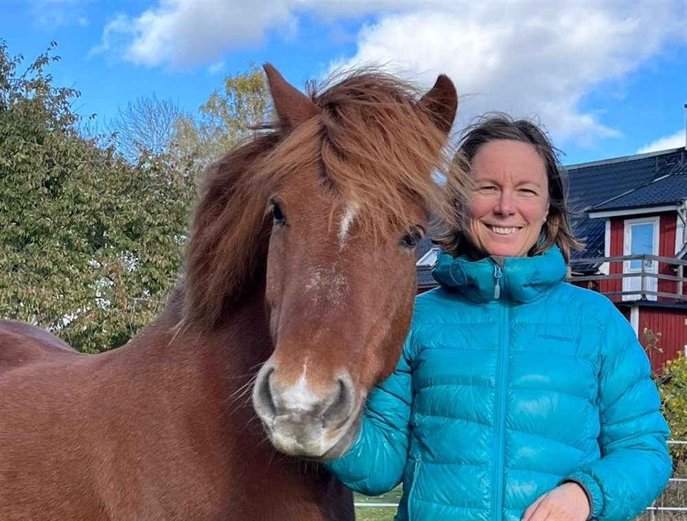Jag är ofta i stallet på måndagar och torsdagar, när min dotter Ines rider. Jag red också på Äppelviken som barn och har på senare år tagit upp ridningen igen och har nu en underbart snäll och gosig islandshäst på halvtid.