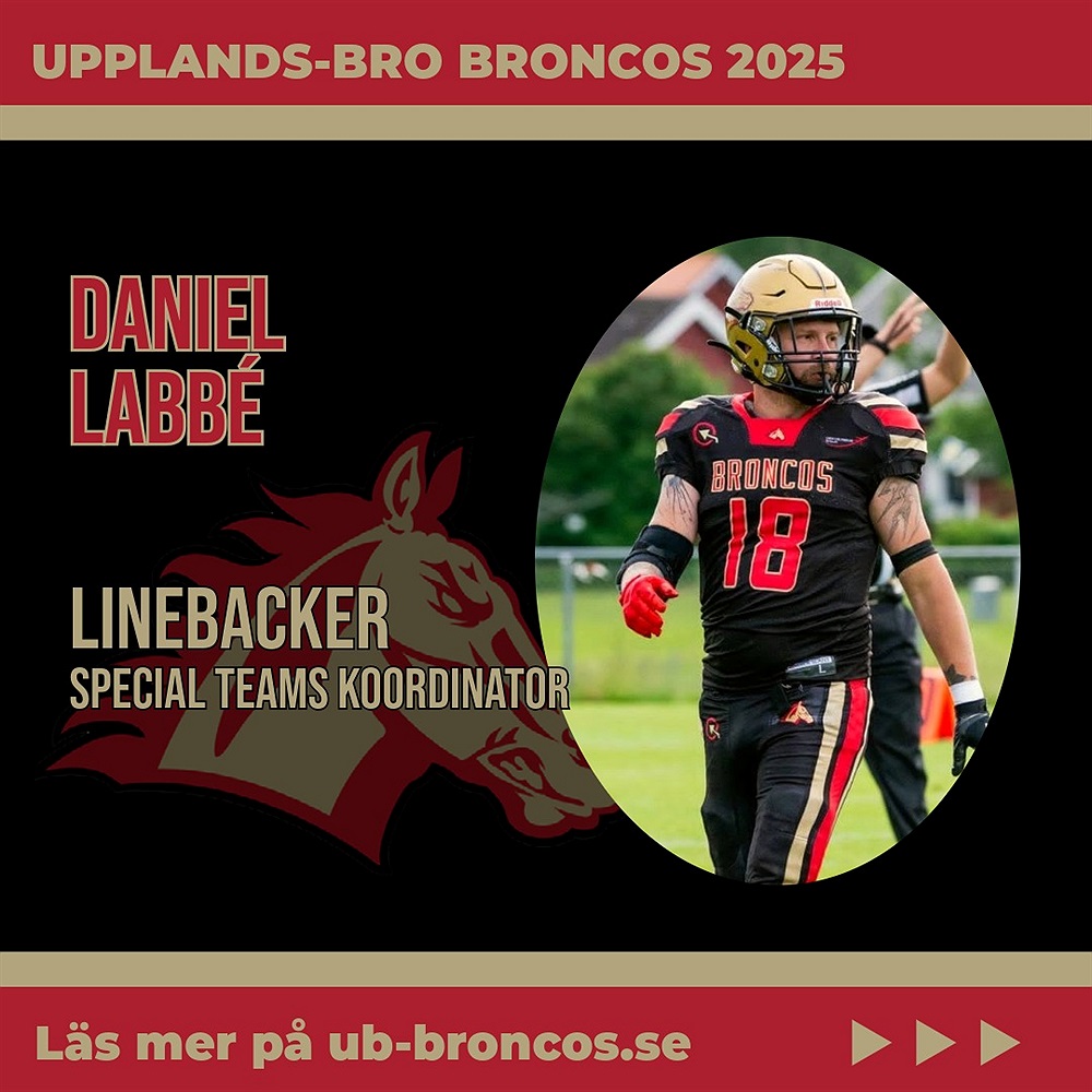 Daniel Labbé introducerades i sporten så tidigt som 1991 i Arlanda Jets U16-lag. Sedan dess har han haft en lång och rik karriär, men sen ett antal år är det i Broncos han återfinns och delar med sig av sin erfarenhet och sin glöd för sporten.