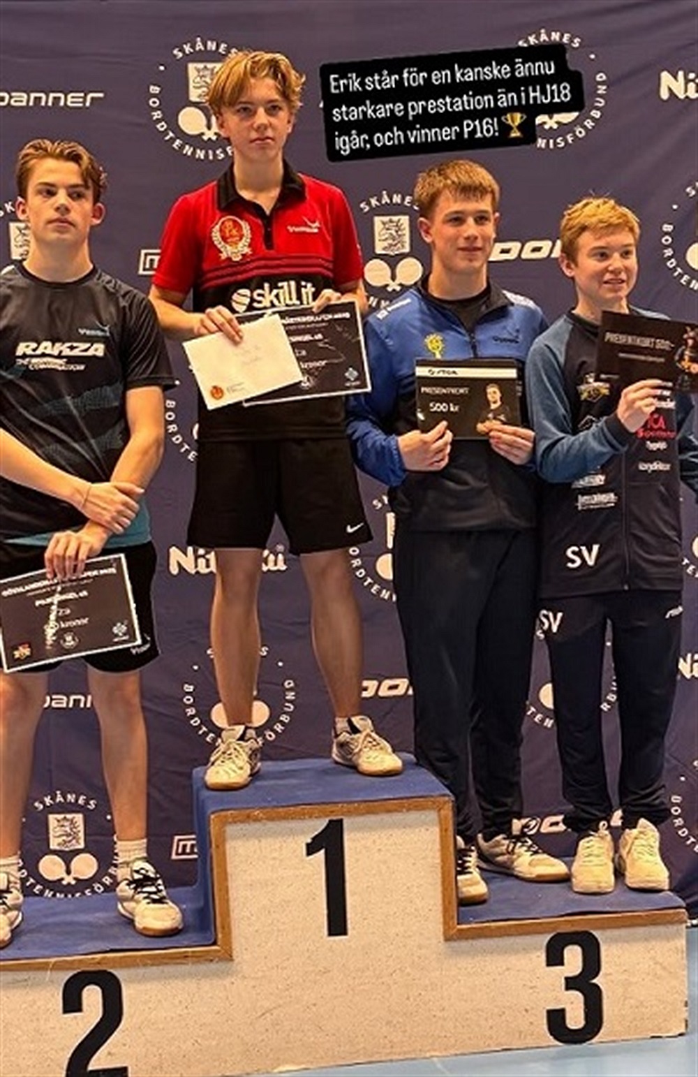 Töyrä deltog i fyra klasser och efter att ha spelat högklassig pingis i 18 matcher under två dagar kunde han summera: klassegrar i pojkar 16 och herrjuniorer 18, semifinal för herrjuniorer 20 och något överraskande "bara" kvartsfinal i pojkar 14 (seedat etta). Erik är med sina resultat med råge kvalificerad till Ungdoms-SM, som spelas i Borås 14-17 maj 2026.