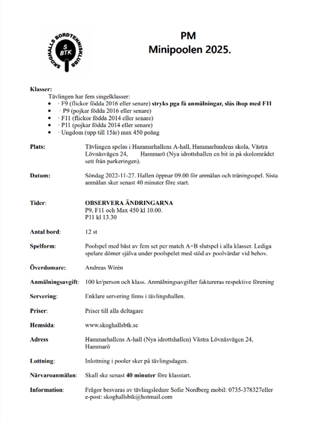 Arrangören vill ha anmälan samlat från klubben, fyll därför i Formuläret överst på hemsidan. Senast söndag den 16/11.