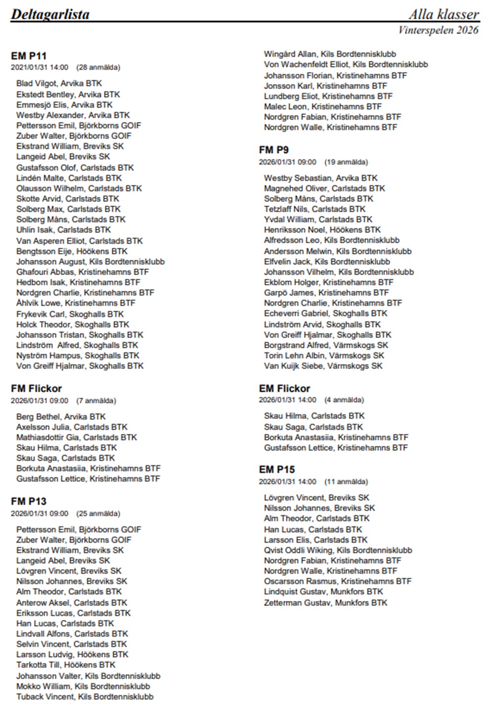 Saknas någon i någon klass eller andra frågor, maila till tävlingsmailen.