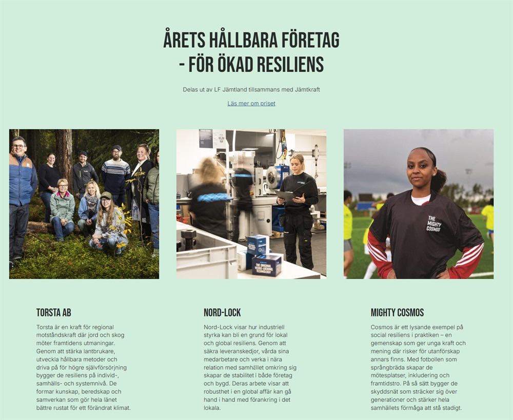 Årets Hållbara - för ökad resiliens finalplats Guldgalan i Östersund