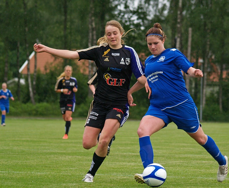 Så var det äntligen dax för avspark i toppmötet med Genarp/Dalby/Staffanstorp, en match som tjejerna och ledarstaben sett fram emot i en hel vecka och vad händer??? Trots att avsparken gjordes av hemmalaget så hann inte den stora och förväntansfulla publiken ens sätta sig ner i bänkarna förrän det var dax för matchens första mål. Bortalaget snodde åt sig bollen på direkten och slog en väl avvägd boll till deras högerytter som tog emot passningen och blixtsnabbt gled in i straffområdet. Ann-Sofie Forsman var snabbt ute för att försöka täcka luckan men avslutet var kliniskt och elegant. Pang.. 0-1 efter ca 30 sekunder. "Di Blåe" märkte nog inte ens att detta inträffade för direkt efter den andra avsparken inom en minut så släppte tjejerna knappt bollen i från sig. Det ena fina anfallet avlöste det andra. Efter 10 minuters propagandafotboll så kom äntligen kvitteringen. Malin Lind klev upp några meter i banan och bröt mycket snyggt ett uppspel från GDS och spelade fram en boll på djupet som Anna "Anton" Gunnarsson sprang sig fri på. "Anton" gjorde ingen hemmasupporter besviken utan placerade enkelt in 1-1 i den 10:e minuten. Bjärnums stolthet fortsatte sen med att ösa på hela den första halvleken. Backlinjen med Johanna, Sofie H, Sofia E, Malin L och målvakten Ann-Sofie spelade mycket stabilt och helt utan misstag vilket gjorde att övriga lagdelar kunde spela avslappnat. Nyckeln till hemmalagets övertag (räknat i bollinnehav) måste nog ändå tillägnas mittfältet med Karolin, Magdalena, Malin M och Sofie R som fightades i varenda duell. Det kan inte ha varit roligt att vara motståndare till BGI:s mittfält idag. Andra halvleken tog vid där den första slutade med ett övertygande Bjärnumsspel. Trots att gästerna stack upp emellanåt så kändes det ändå aldrig riktigt farligt i dom bakre regionerna. Räknat till målchanser i matchen så förtjänade hemmalaget helt klart en triumf idag men det där lilla extra flytet för våra farliga forwards Anna och Sandra ville inte infinna sig. Dom skall ändå ha en stor eloge för sitt uppoffrande spel vilket skapar mängder av målchanser. En stor eloge även till inhopparna Jessica, Linn och Magda som alla hoppar in och gör ett fantastisk jobb vilket gör att kvalitén t o m höjs några snäpp när matchen står o väger i andra halvlek. Alla i truppen skall ha beröm för en fantastisk insats som så när hade givit oss 3 poäng. Extra beröm vill vi idag dela ut till Malin Lind, Magdalena Nilsson, Ann-Sofie Forsman och Sofie Rilöv. Måste även ge Tina Bernsheim beröm för att hon alltid ställer upp när det är dax för match oavsett om hon gör succéinhopp eller ej. Vi i ledarstaben känner oss väldigt nöjda med att ha tagit ytterligare 1 p till samlingen. Nu har vi mött samtliga lag i serien och ännu har inget lag vunnit mot oss men nu vänder serien med en tuff bortamatch mot Önnestad på söndag och skall vi förlänga den sviten så krävs det en 100%-ig insats igen. Tack för en helt fantastisk vårsäsong. Vi syns i veckan. Mvh Ledarstaben..