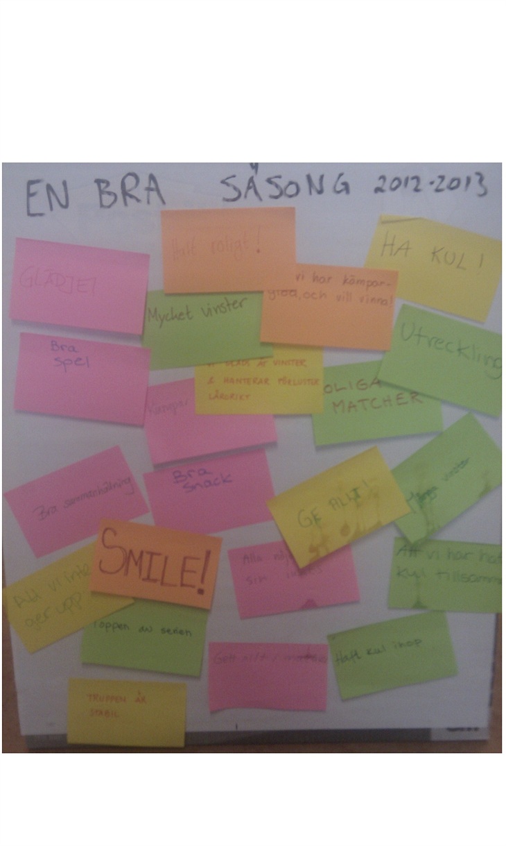 Kollar lite på lapparna vi skrev under rubriken "En bra säsong" på träningslägret inför säsongen.
