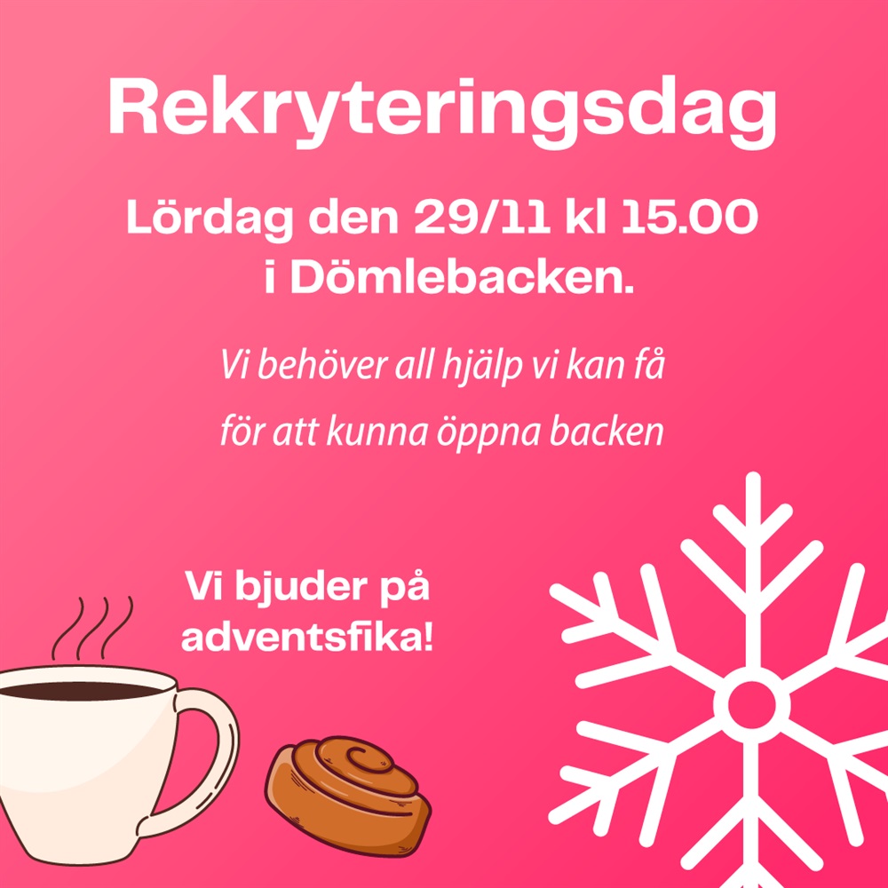 Rekryteringsdag i Dömlebacken – lördag 29 november kl. 15.00