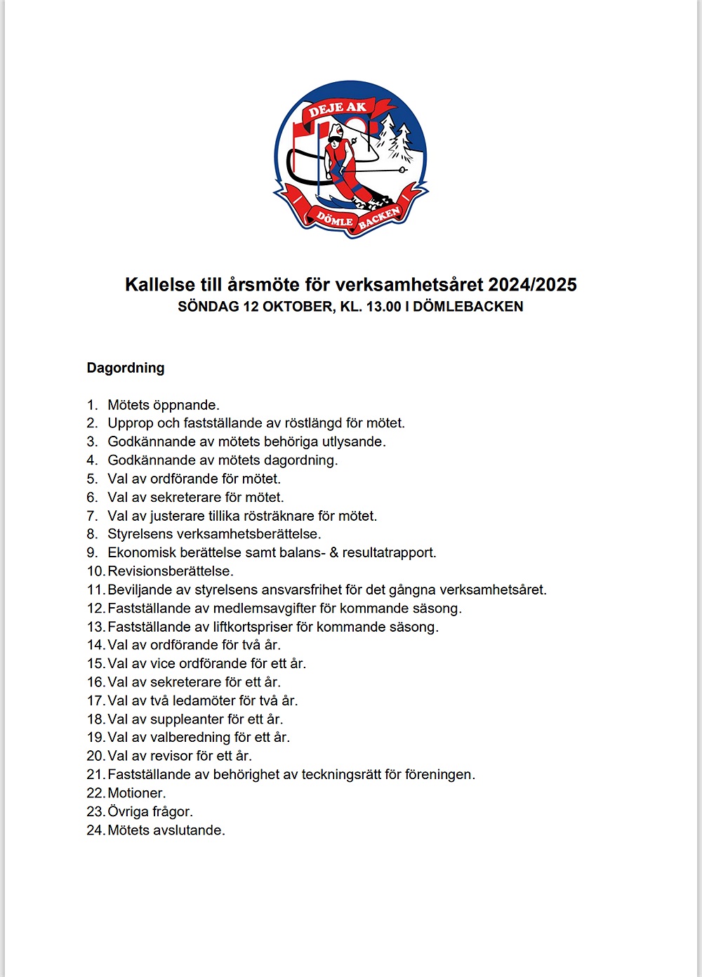 KALLELSE TILL ÅRSMÖTE FÖR VERKSAMHETSÅRET 2024/2025