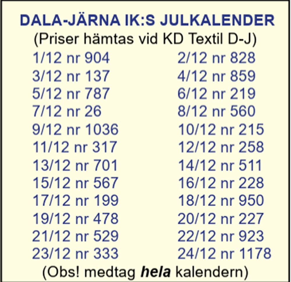 Dragningslista DJIK Julkalendrarđđ đŒ
