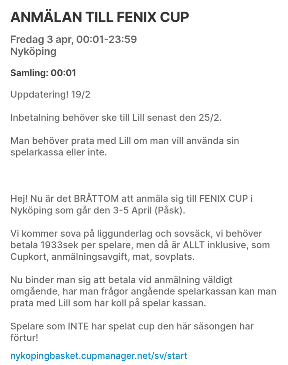 Vi har två st som av olika anledningar inte kan vara med på Fenix Cup nu i påsk, start den 3 April!