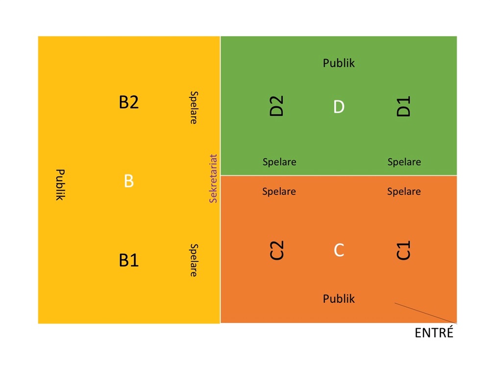 Första matchen spelas redan kl 08:00 och samtliga lag kommer att samlas 07:30 i entren till Stadium Arena. Alla våra matcher kommer att spelas på plan C1 (se bild) Sista matchen spelas 11:30 och efter en gemensam samling räknar vi med att vara klara senast 12:30.