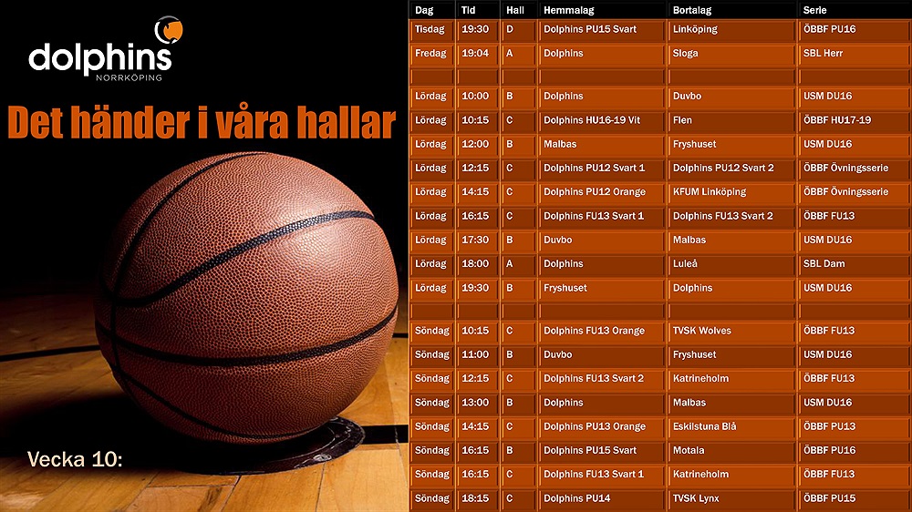 Vecka 10 är här och det är dags att visa vad Dolphins Norrköping står för – hjärta, kämpaglöd och laganda! 🏀