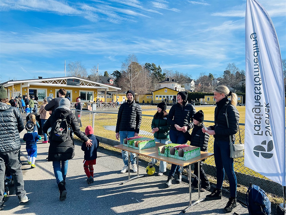 Team Svensk Fastighetsförmedling Danderyd besöker Danderydsvallen och bjuder på korv och festis.