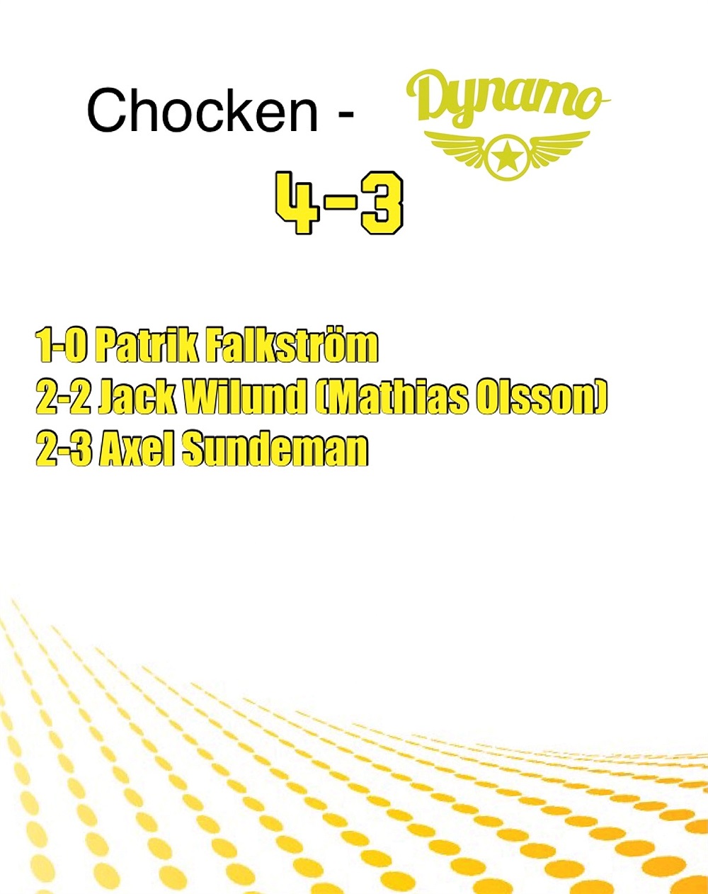 Chocken pressar ett Dynamo som inte lyckas reda ut och tappar in 2 mål inom loppet av 2 min, och matchen slutar 4-3 till Chocken.