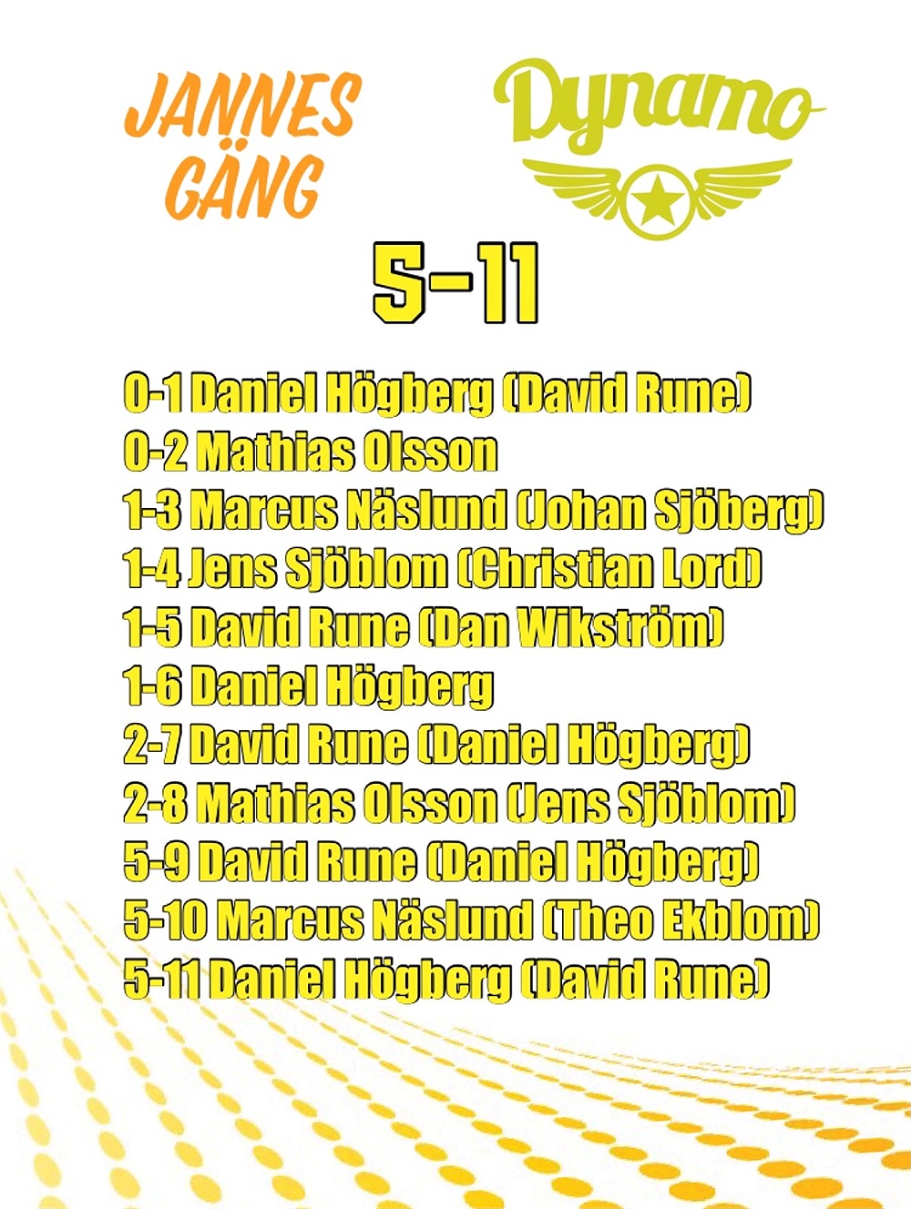 Bra fart på kedja 2 i Dynamo (Rune, Wikström, Högberg) som stod för 6 av matchens mål och tillsammans gjorde 11 poäng!