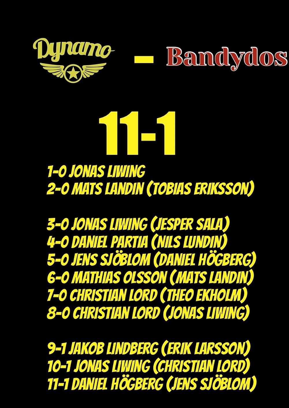 6-0 Mathias Olsson med assist av Mats Landin.