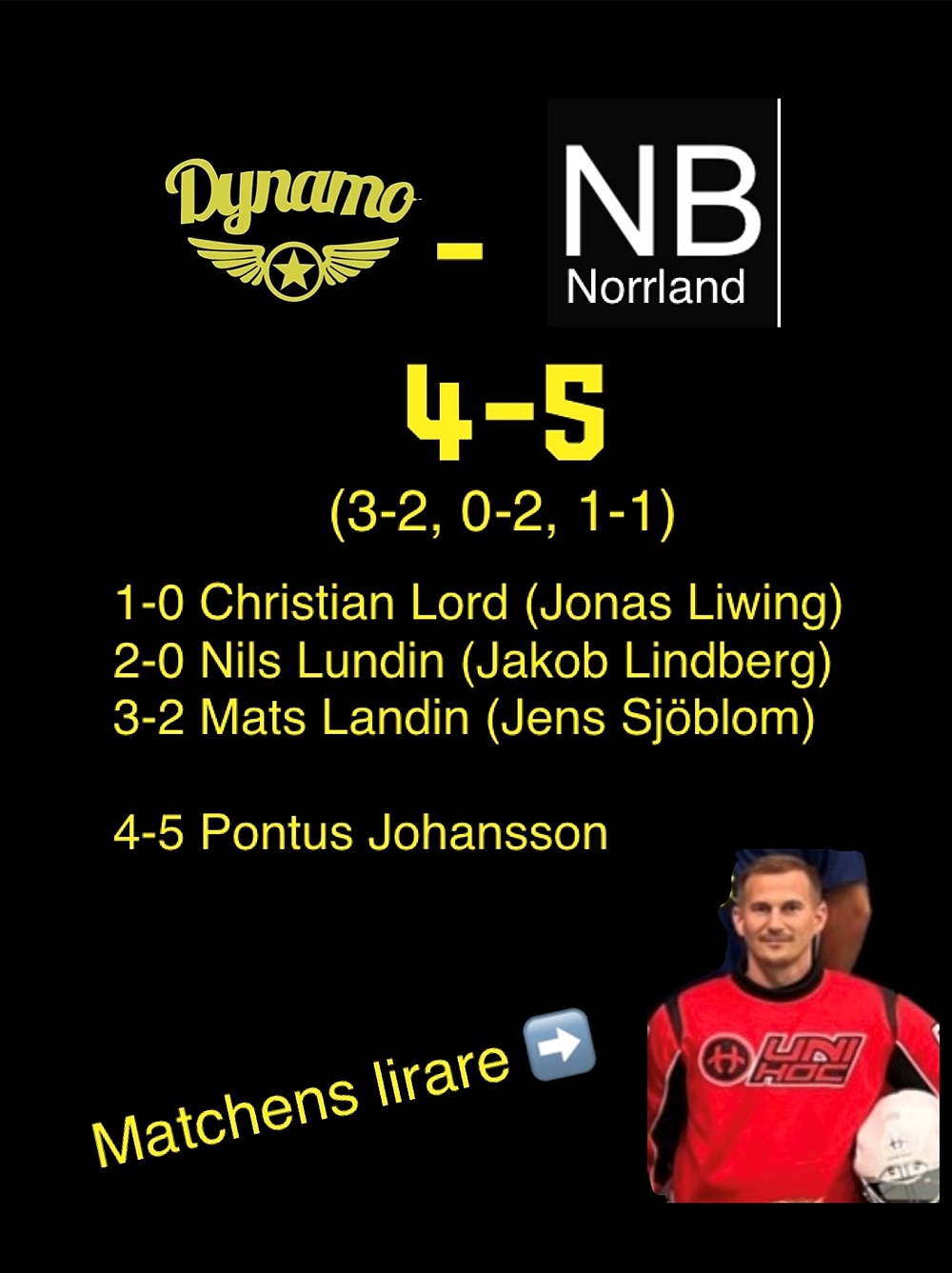 Men det grinar illa för Dynamo som drar på sig en del utvisningar, och när Lord sitter på botbänken så drar Dynamo på sig ytterligare en 2:a för felaktigt byte, vilket leder till spel i boxplay 3mot5. Norrland är ett skickligt lag och det är svårt att försvara sig med 3 man mot deras PP. Tar bara ett par sekunder för Norrland att utnyttja de övertaget.