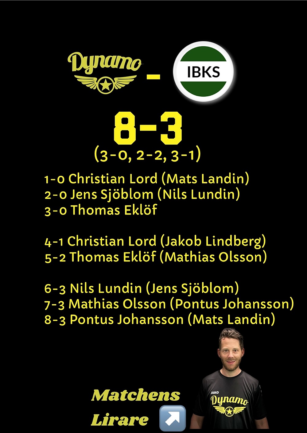 Dynamo gör ett par riktigt snygga spelmål..Lord (igen), Lundin, och Eklöf..igen..nästan identiskt med hans första. Men denna gång fint framspelad av Mathias Olsson, och Eklöf trycker upp den..i borte krysset..igen!