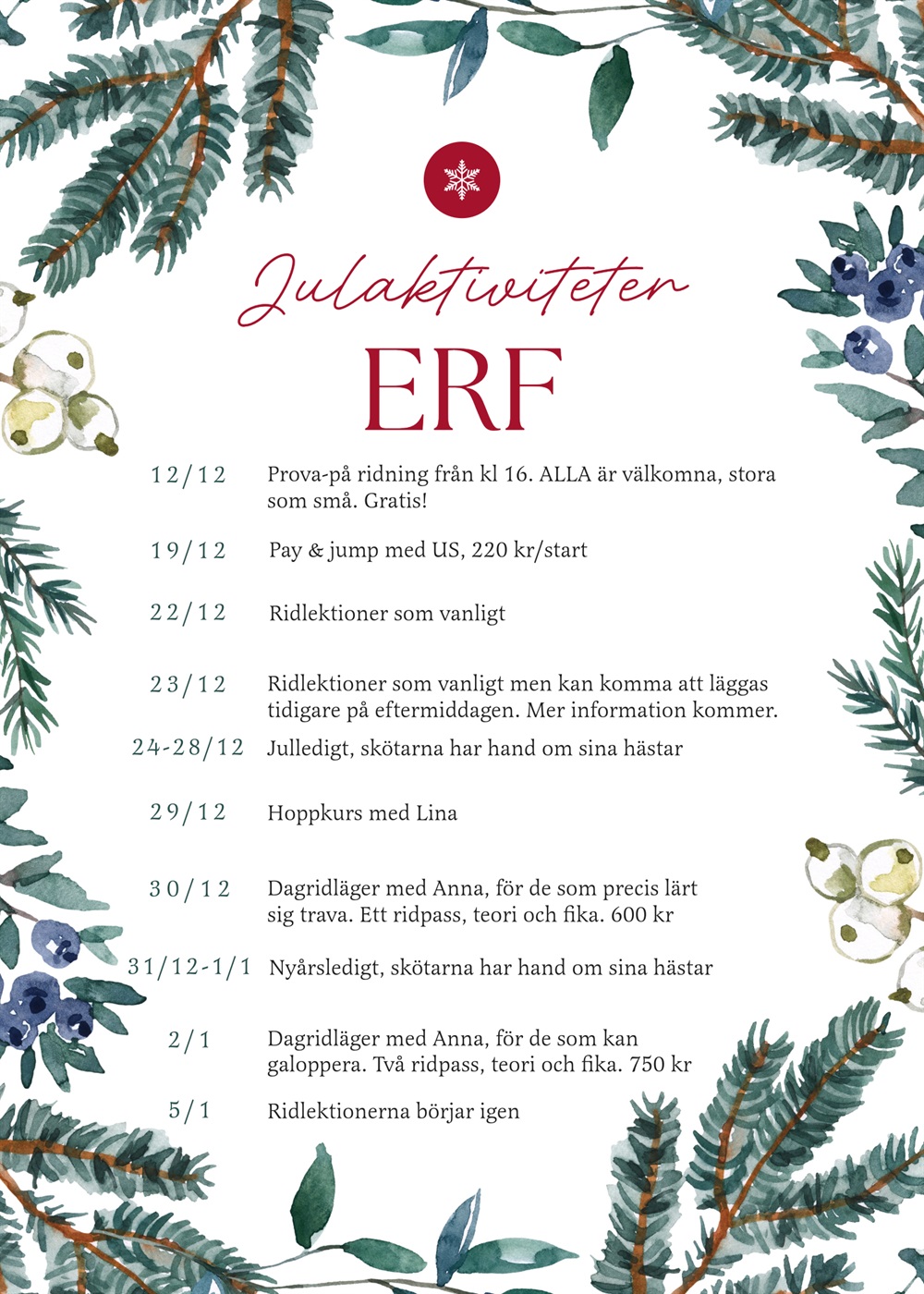 Här kommer planeringen inför jullovet, mer information om varje aktivitet kommer publiceras på Facebook. Varmt välkomna till oss!