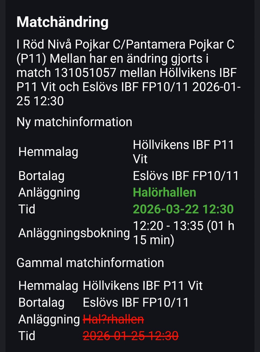 Matchändring