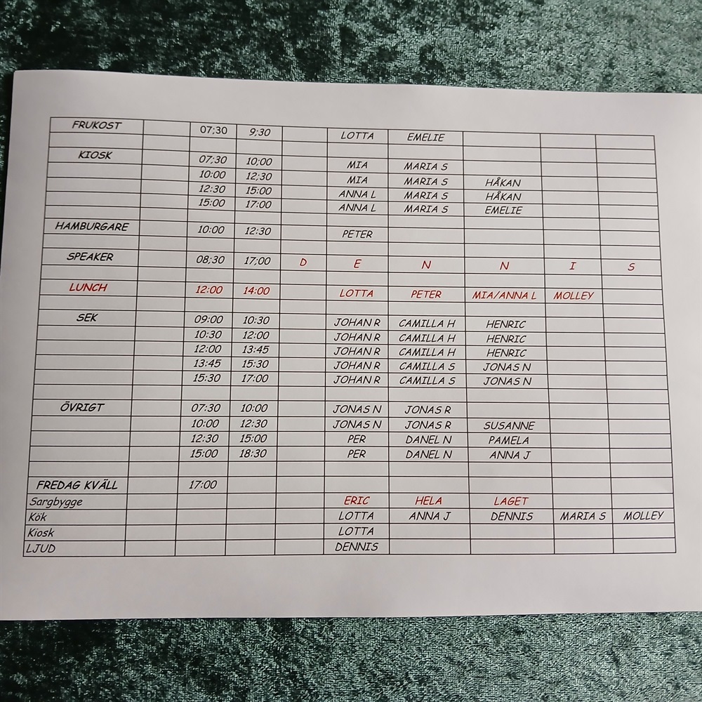 Hur bra som hels! Saknas dock vem som ansvarar för semlorna? Men de är väl bestämt att det är Nilsson?