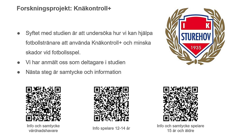 På föräldrainformationen så lyfte vi upp att vi har anmält oss till ett forskningsprojekt som går ut på att ta fram ännu bättre träningsmaterial för att stärka fotbollsspelares knän från skador.