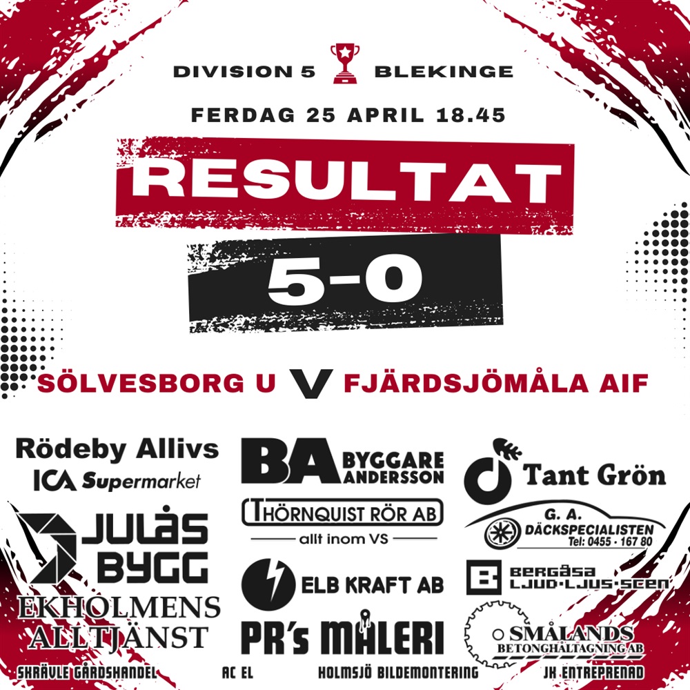 Det var en kraftigt återbudsdrabbad trupp som firade fredagkväll på Svarta Led. Vi inleder med en kanonchans direkt, men Adam får inte ordning på avslutet. Sölvesborg har kontroll på spelet och vi faller rätt lågt och försvarar oss bra, men en perfekt krossboll leder till ett inlägg där Ola räddar nicken, men de kan stöta in returen.