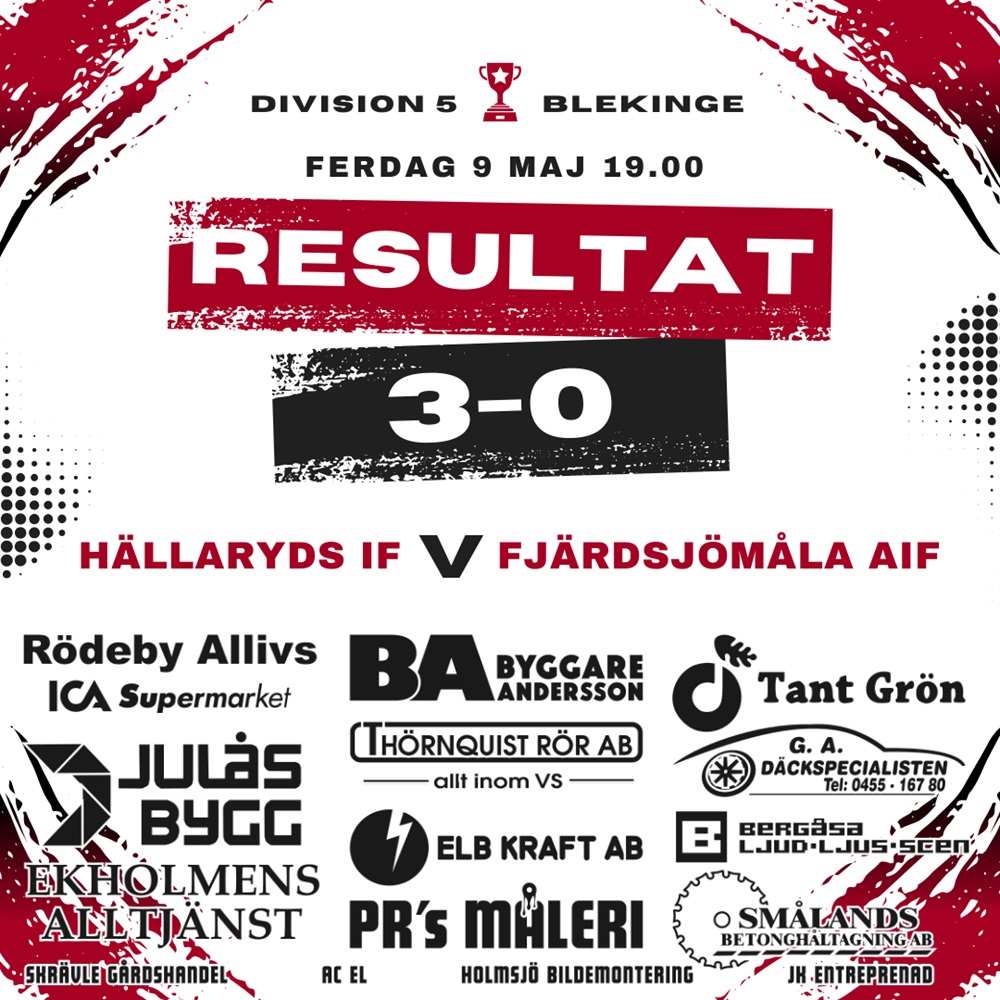 Trots ett spelmässigt övertag första 30 min och ordentligt med halvbra lägen vill bollen inte in. Istället sticker Hällaryd upp på två fasta situationer och lyckas få in 2 bollar. Hällaryd lyckas med att dra ner tempot och Fjöset luras in i fällan och det blir mycket långbollar från båda lagen. 2-0 till hemmalaget i paus.